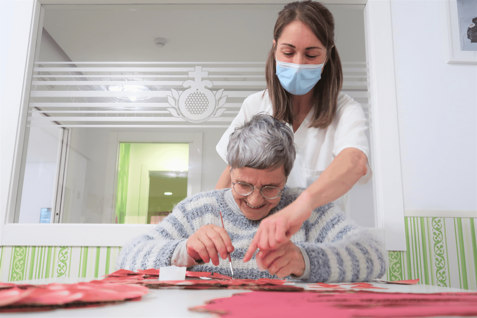 FOTOS: Residente y terapeuta de la Residencia de Mayores San Juan de Dios en una de las actividades del centro.