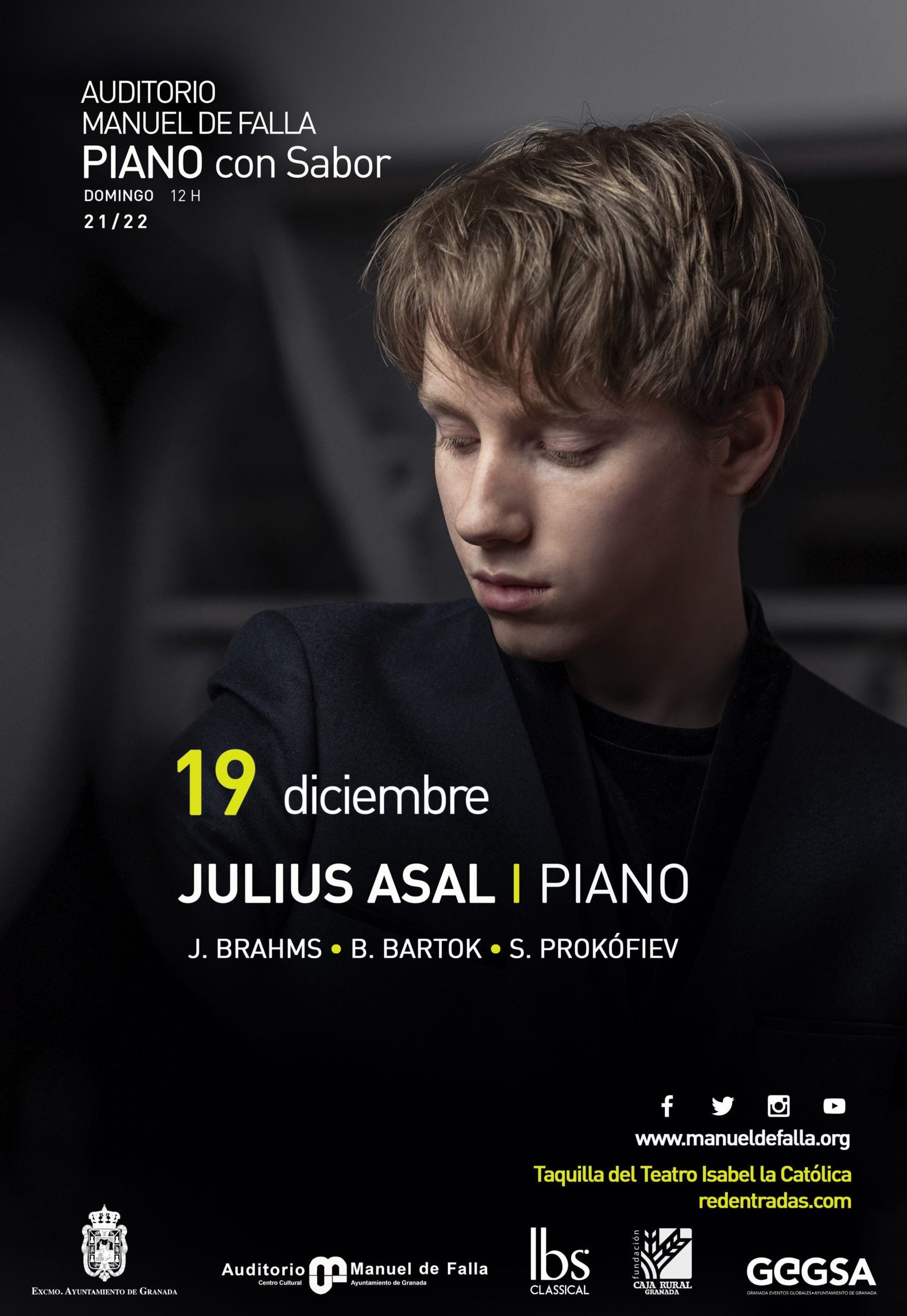 el próximo domingo 19 de diciembre a las 12 horas el pianista Julius Asal actuará dentro del Ciclo Piano con Sabor.