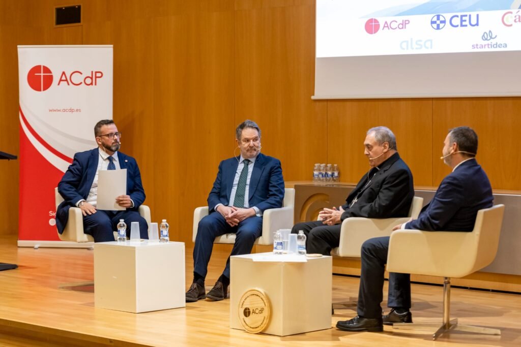 Junto al arzobispo, intervinieron el director de El Debate, Bieito Rubido, y el catedrático de Periodismo José Francisco Serrano Oceja, en un diálogo moderado por Mario Pablo Sánchez Barrón.